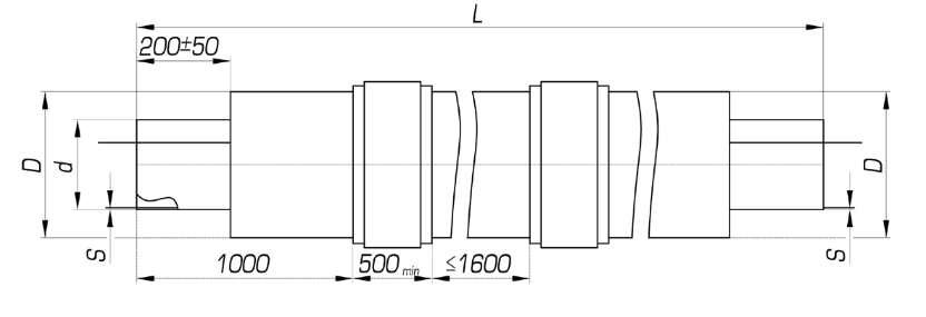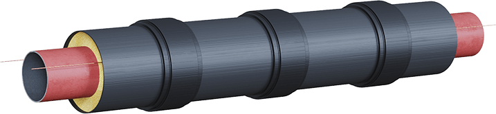 Изделие, состоящее из отрезка стальной трубы, помещенного в футляр с заполнением свободного пространства ППУ изоляцией и с размещенными в теле изоляции медных проводников СОДК. На поверхности футляра из ПЭ-трубы смонтированы кольца усиления. Изделие изготавливается только в футляре из ПЭ-оболочки. Предназначена для прокладки ПИ-трубопровода в стальном футляре – при протаскивании изделия кольца усиления защищают основную оболочку ПИ-трубы от повреждения.