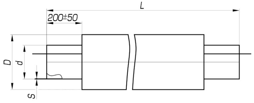 Изделие, состоящее из отрезка стальной трубы, помещенного в футляр с заполнением свободного пространства ППУ изоляцией и с размещенными в теле изоляции медных проводников СОДК.